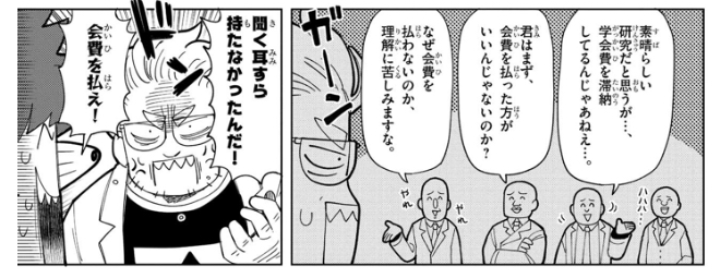 「会費払えないと実際に学会追放されるぞ」ってネタ自体は見かけたけど、会費未払いで追放されるキャラ初めて見たわ