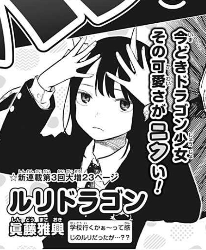 ドラゴン娘が主人公の日常ものだろう。だれてきたら別の怪物とのハーフとかも登場するかも