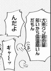 1コマだけだと犬塚くんがかわいい子に抱きつかれてびっくりしているように見える。
