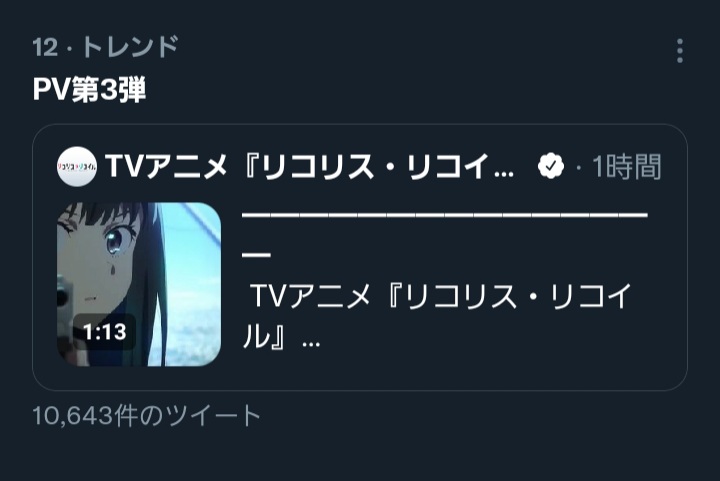 ちなみにリコリコの予告はよく出来てるので予告から予想すると大抵外れます。俺はこのPVから千束たきなは死ぬと予想しました!つまり!!!
