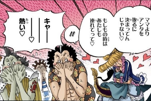 おでんとトキは恋バナすることも滅多にないであろうむさ苦しい白ひげの船員たちがうきうきソワソワしてたのも含めて好き
