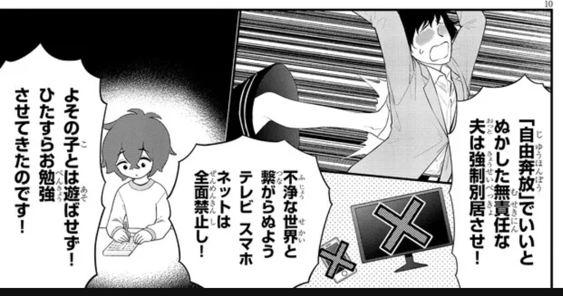 絵面の勢いで押されそうだけど娯楽や友達付き合いを禁止して自分の理想を押し付けるって改めて中々の邪悪だな