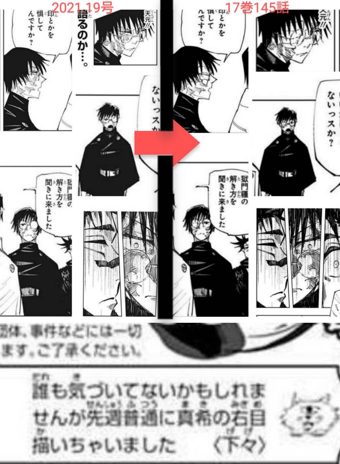 一つ抜けてない?伏黒ががっつり描き直されてるところ