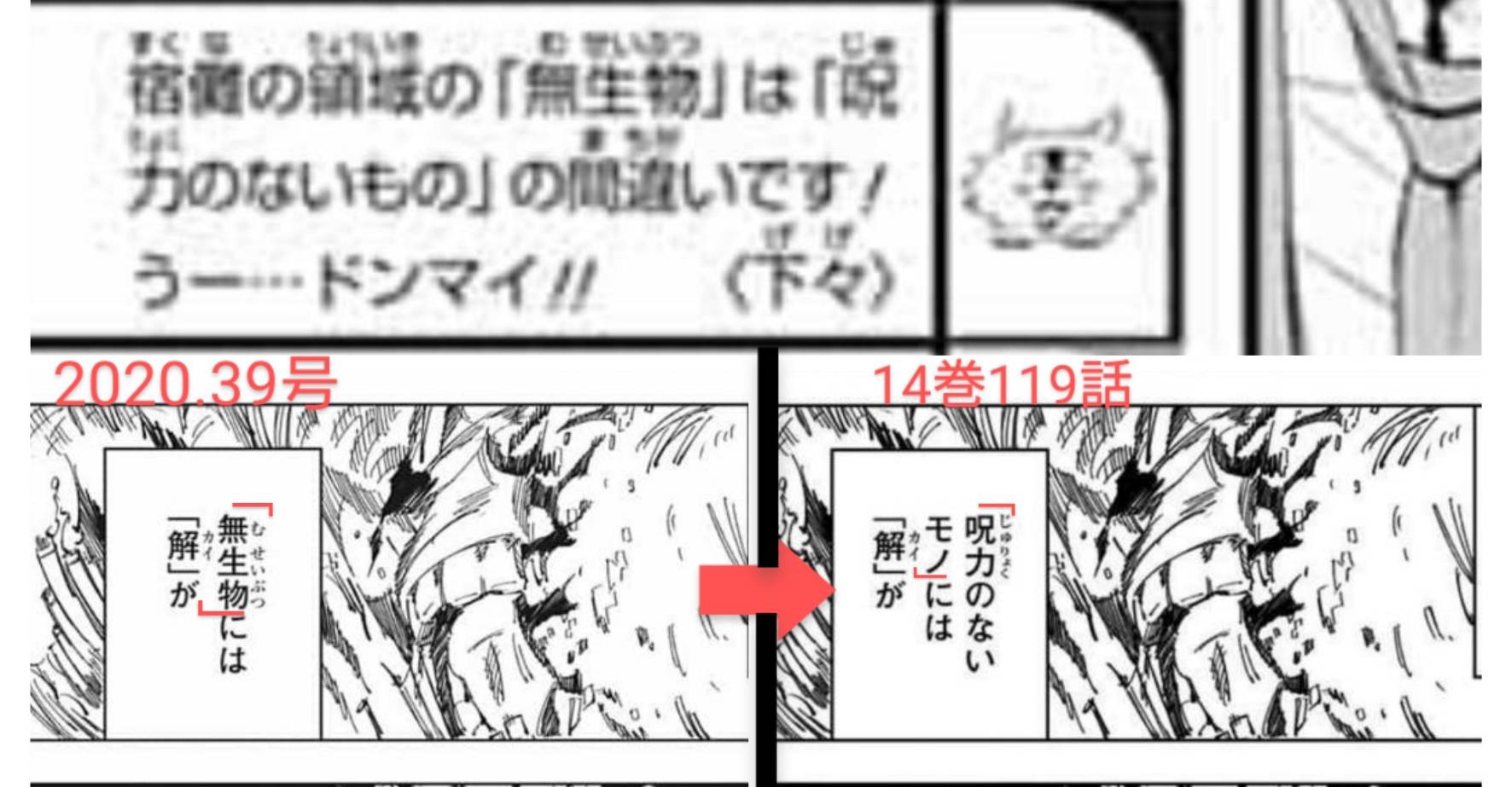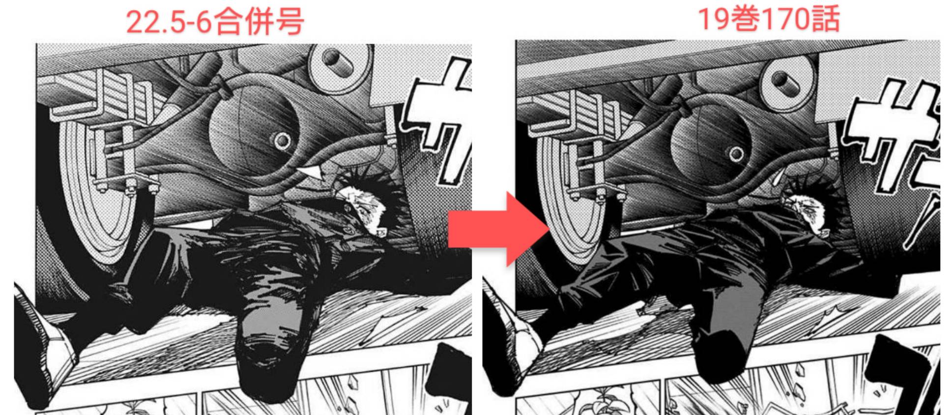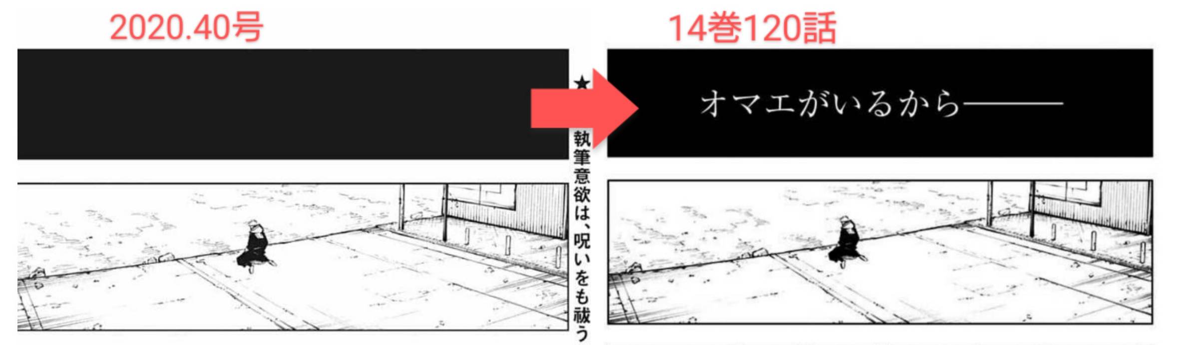 金カムのごそっと変更レベルになれてるから呪術あんま変更加筆しないなって思ってたけど、こうしてみればちょいちょい加筆あるね