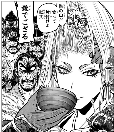 「食って片付けよ獣共」「嫌でござる」の下にもかかるし