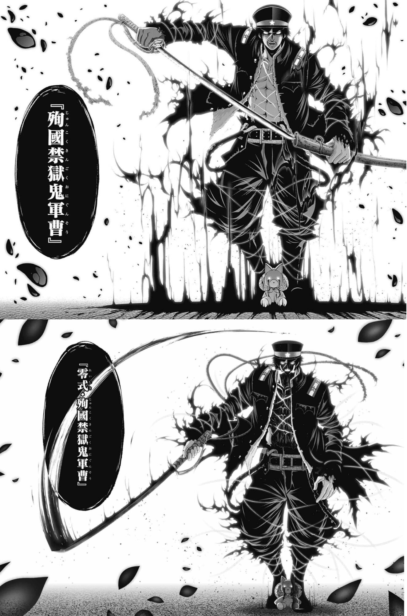 「零式・殉國禁獄鬼軍曹」の吹き出しが刀の軌跡で斜め線入ってØ(斜線付きゼロ)になってたのめちゃくちゃおしゃれじゃない!?