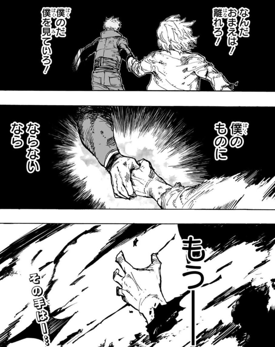 与一を蹴っているところ、自分はボロ服で裸足なのに与一はちゃんとした服と靴があるのはAFOが用意したのかな…