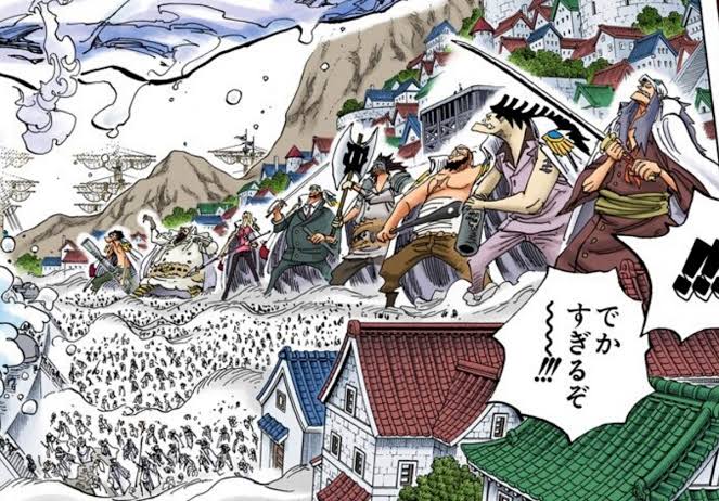 ジョン・ジャイアントもいる筈だから9人だよ、まぁそれを含めても巨兵海賊団の船員の方が多いのはまじでやばい