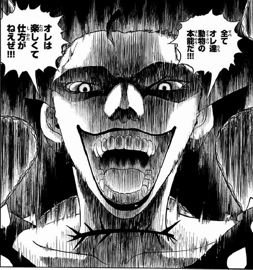 今まさにメガネの女に喜んでなにかしようとしているが内心ではメガネ女の仲間に非道な行為をされてキレている。 こいつが他者を痛めつけるのが好きなのもあるが。