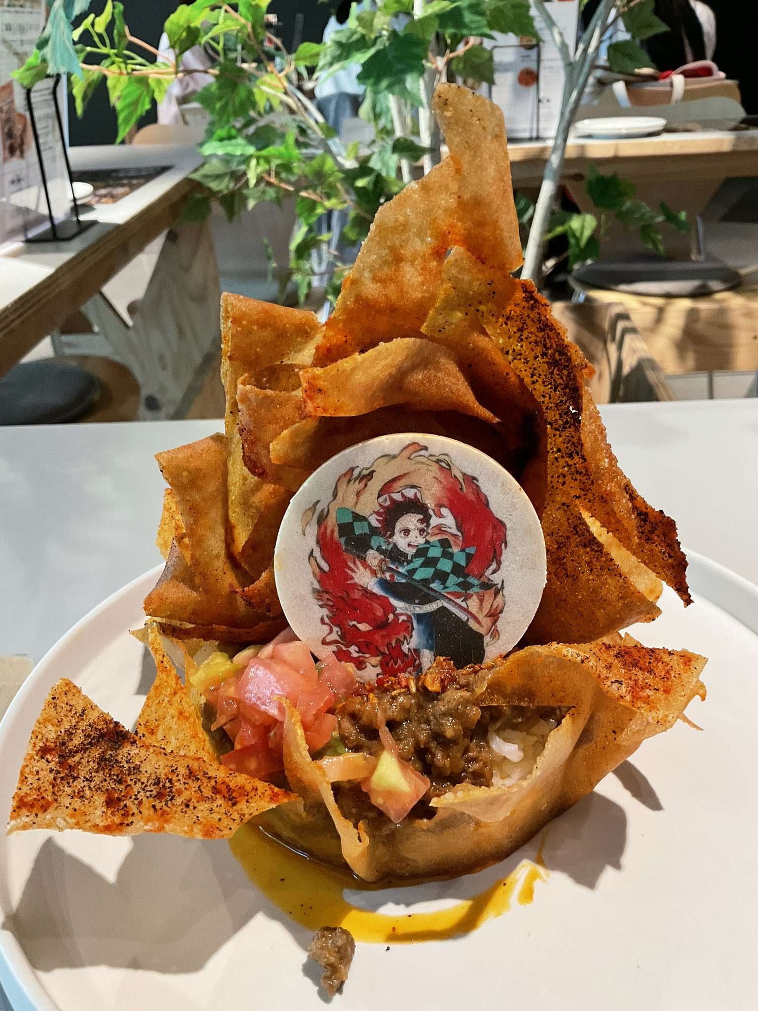 周りのヒノカミエフェクトは春巻の皮をカリカリに揚げててクリスピーでめっちゃ旨い上にキーマカレーもトマトとスパイスが利いてる本格的なお味でめちゃくちゃ美味しい
