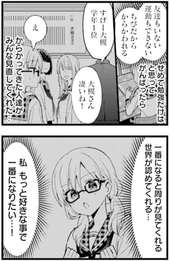 虐めを学年1位取って見返して、それも「大槻さん凄いね!」ってナチュラルに言わせた後に世界一のバンド目指したってキャラ造形の王道をガン無視してるよな