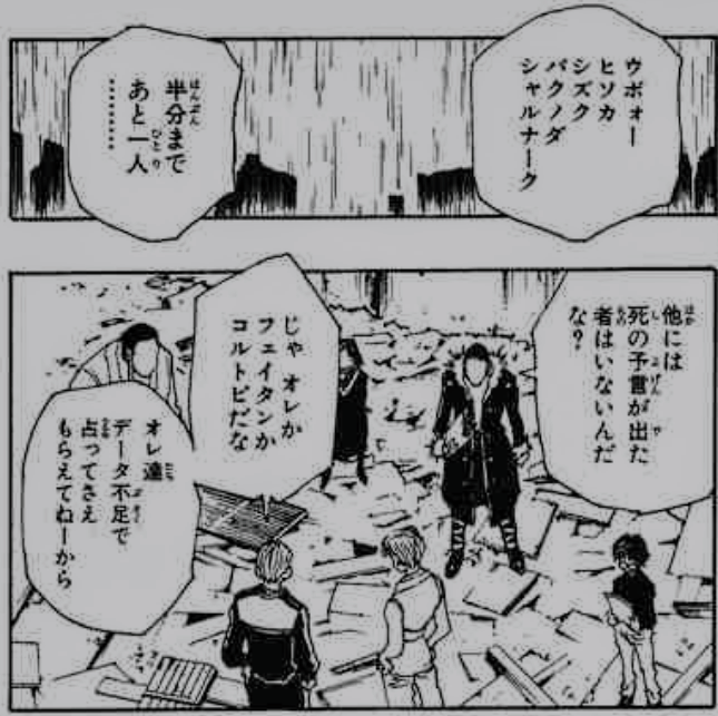 ヒソカ→3週目以降の予言があるか不明だが、反応的にあるのをテクスチャで消した可能性が高い?