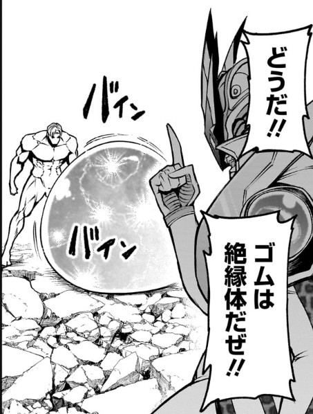 雷撃を避雷チンで凌ぎ、そのままカウンターで返すところに絶縁性のゴム膜で防ぐのは合理的なんだが