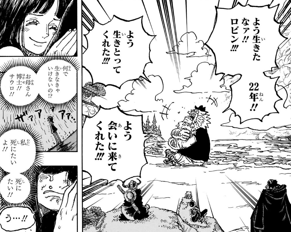 よかったなぁロビン…!!!!今週ロビンの表情がずっと可愛くてちょっと幼い雰囲気なのサウロにあって子供の自分に戻れた感じだったのかなと思ったら泣けてきた