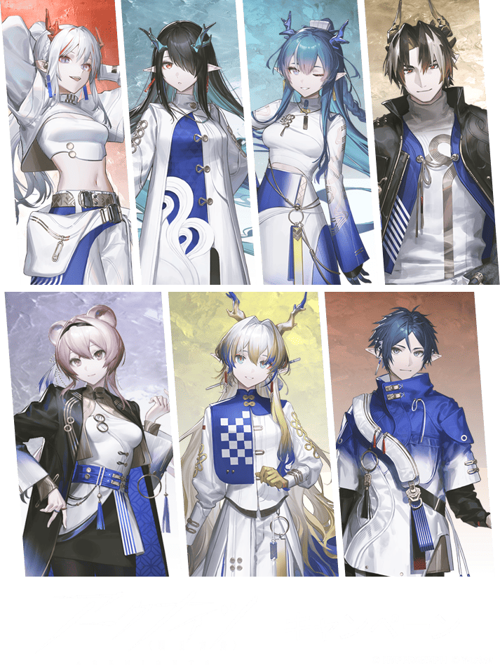 キャラが左から、無印メインメンバー、無印主人公、アプリ版メインメンバー、アプリ版主人公、アプリ版第1部ラスボス