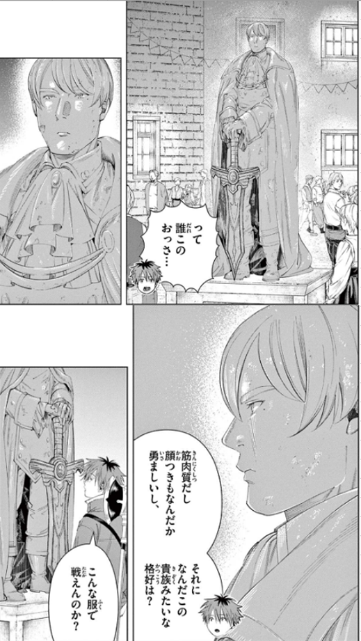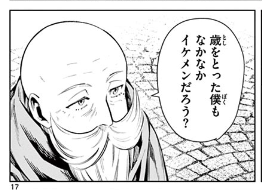 1話を最初見た時はこのかっこいい勇者、ギャグマンガ的な縮み方してる…!ハゲた!数ページ前まではあんなにかっこよかったのに…!って感じだったけど、今見返してみるとギャグ的な縮み方してるしハゲてるけど目が綺麗でかっこいいな…って気持ちが変化した。