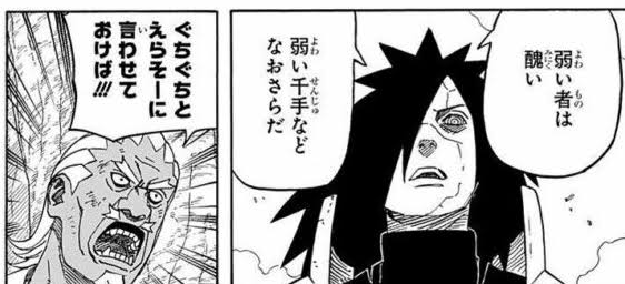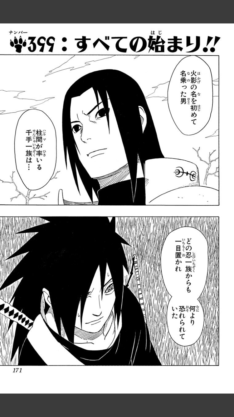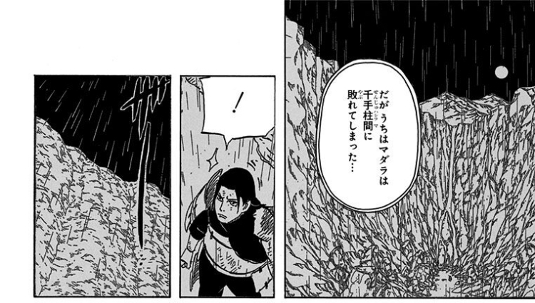 本人の回想の筈なのにマダラが怯んでるように描かれてるのおかしい… まぁマダラ本人への言いようのない負の感情は持ってたんだろうしその辺が積もりに積もっての表現なんだろうけど。