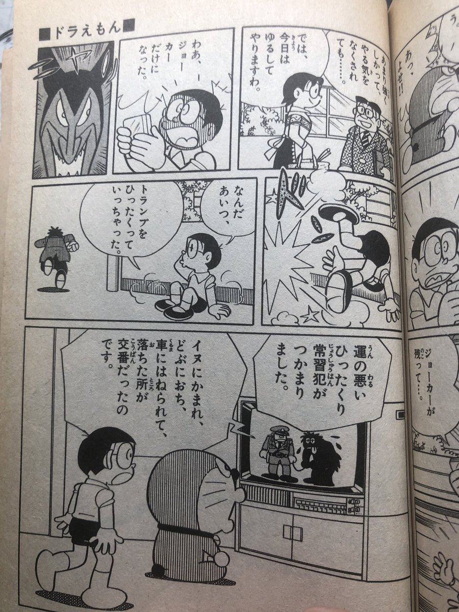 アニメでのび太が残り2枚のトランプから逃げた先でママに会ってママが持ってた買い物籠を受け取ったら中に最後のジョーカーが入っててそれを引ったくりが持っていったって流れだったと思うけど
