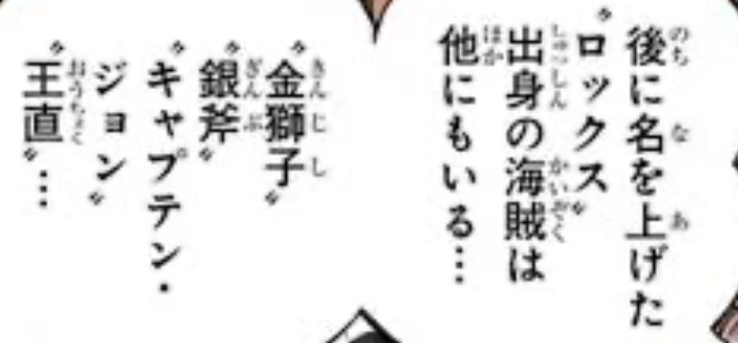 ロックス海賊団設立前から同行しているメンバーとして白髭や王直と並んで紹介されているから設定上は大物なはずだし、キャプジョンと並んでスリラー編でキャラデザだけ登場しているから「ぽっと出」のキャラではないのよ
