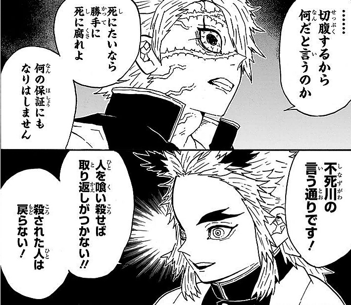 横からだがその前の煉獄たちの反論はネズコに食われた人間にわびで腹切っても意味ないだろってことだし