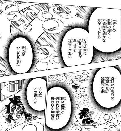 個人的には広範囲に斬撃飛ばすのは剣術や呼吸の研鑽だけど月形のエフェクトや『振ってないのに斬撃出してる』の部分はまあ血鬼術やろって思う