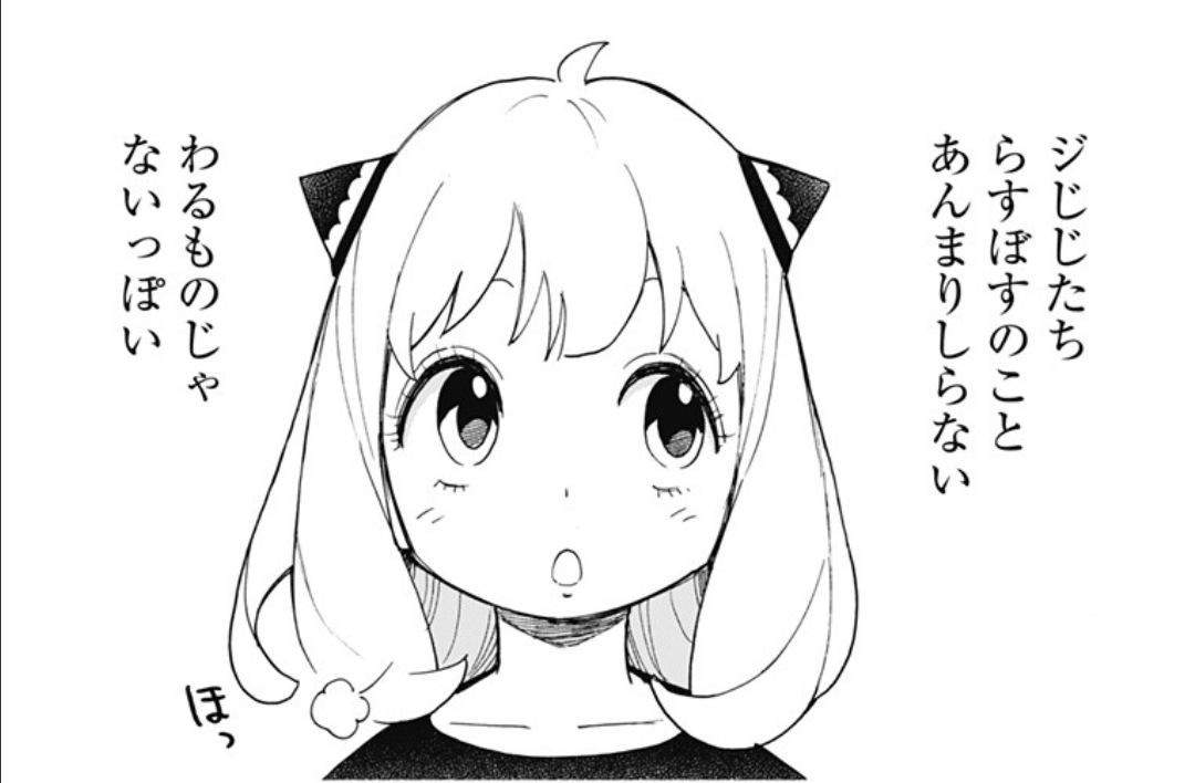 ジじじの被験体に対するスタンスがどの程度悪辣なのかわからないけど、もし仮にアーニャがジじじの真実を知った時にそれが心の傷にならないといいなと思ってしまう