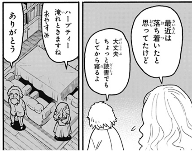 この反応もおじいさんの秘密を何にも知らないで「今日は心が沈む日らしいからハーブティを淹れてあげよう」っていう純粋な気遣いに見えなくもないしな