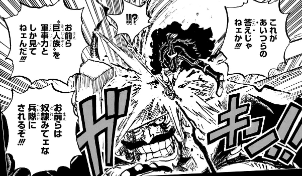 ワンピ世界の住人からすれば巨人族の王と打ち合える人間の方がおかしいのよね、特にあの時代は