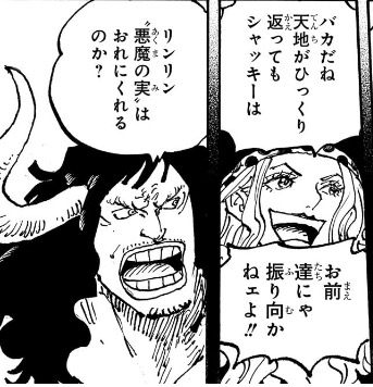 →結局カイドウも生き延びたけど、怒ってリンリンの手に入れた悪魔の実を横取り