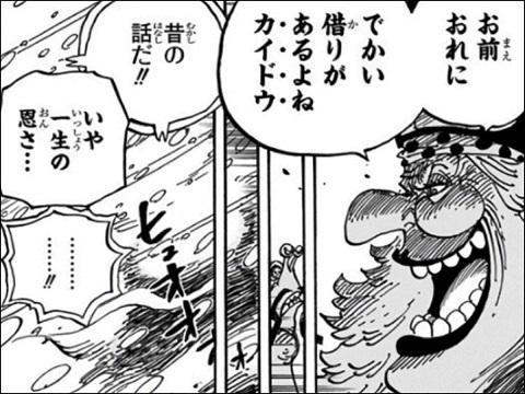 →自分がカイドウ利用する腹積もりだったのを棚に上げて、悪魔の実食べて去ったことに怒るし、「一生の恩」着せがましく擦る