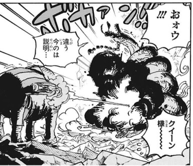 キッドの悲痛な叫びが鬼ヶ島に響き渡る、突如流行した奇病、シャンクス化。キッドの症状は首が太くなり、顔に傷跡が出るステップまで進んでいた。