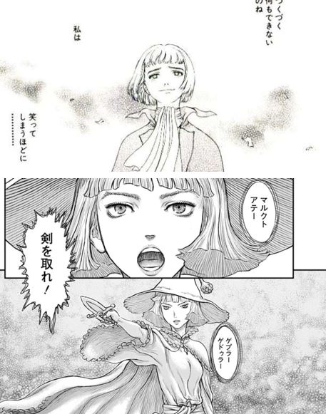 ファルネーゼは自分には何もできない小さな存在みたいに感じていたのかもしれないが、ほとんど接点の無い幼児退行状態の女性に対してこんな風な対応出来るのはガッツ一行の中でもファルネーゼだけだと思ったが