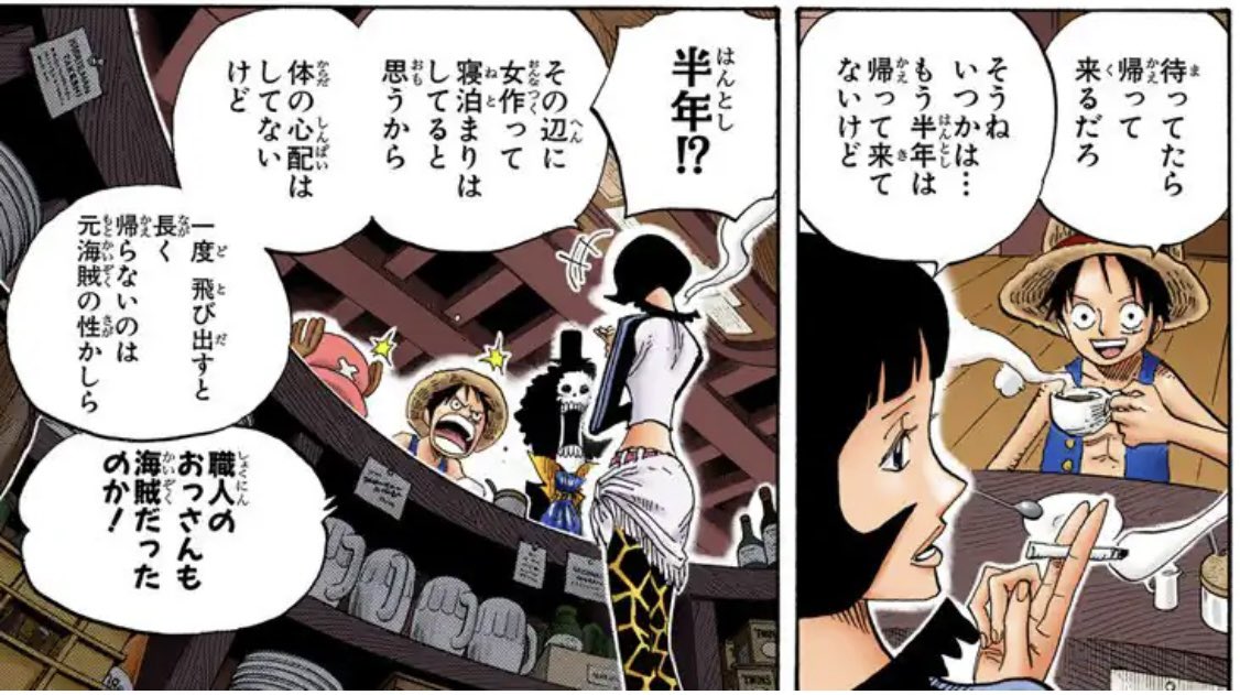 レイリーとシャッキーはお互い元海賊ってのもあるし二人の性格的にも束縛せず自由にっていう関係性だけど一番好きなのはお互いだって信頼関係があるんだと思う
