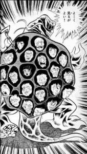 人間の顔の方は目の焦点が合ってないのが化け物感を際立たせてる