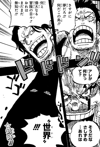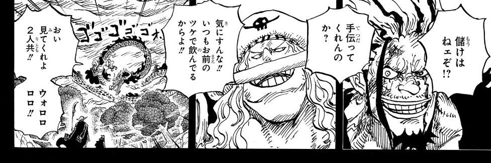 後の最強の生物と最強の男とかつての船長の揃い踏み