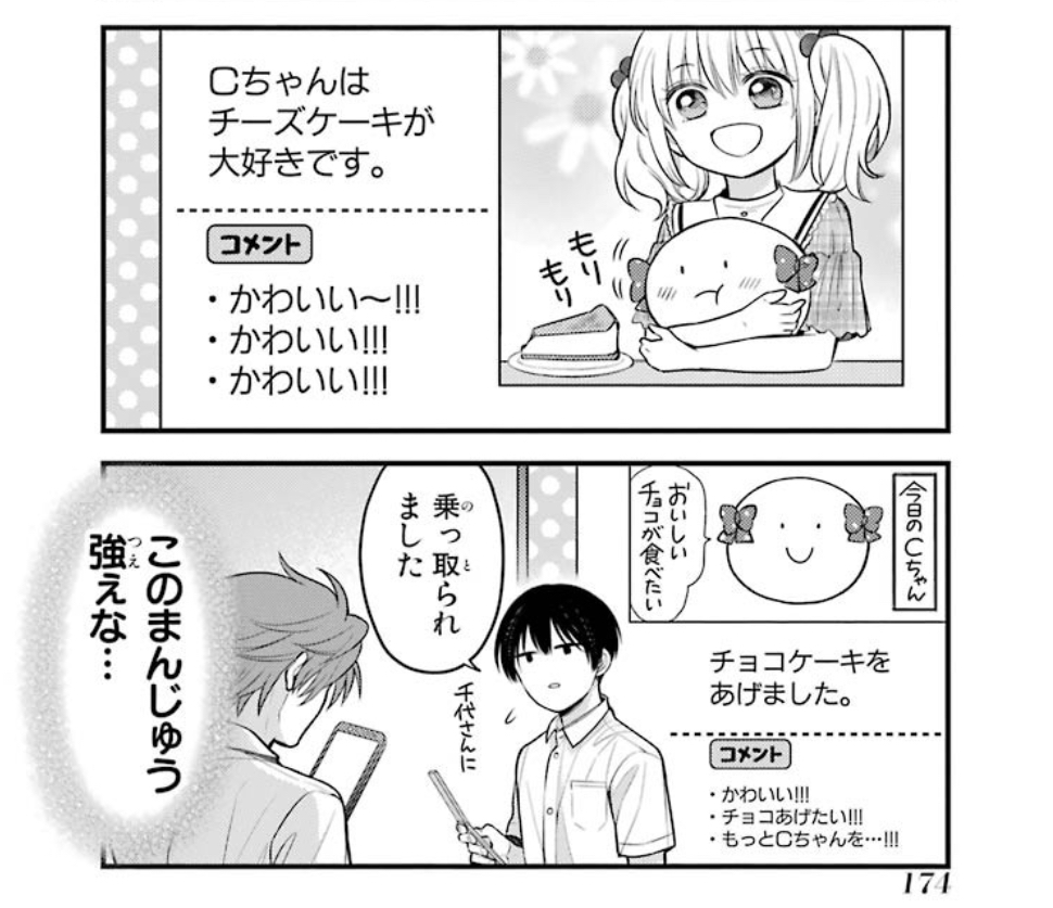 最後の千代ちゃんのコマ、訝しげな眉と鼻の影の感じのせいでちょっと凛々しい顔になってるの笑うw
