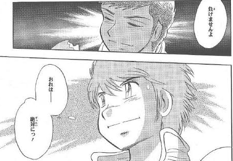 兜甲児少年が肩車して周囲の状況を教える