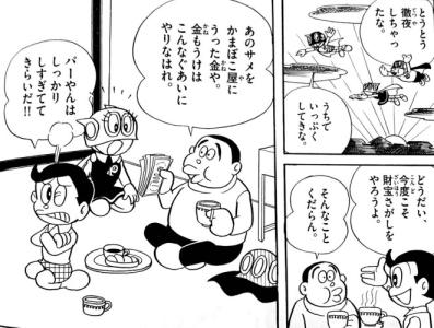パーマン1号がコピーロボットで偽札づくりを始める回(お札持ってコピーロボットonして増やす)で