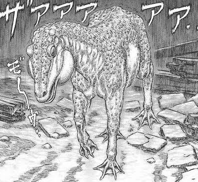 象やカバなど大型哺○類の姿で描かれることが多いベヒーモスだが本作では恐竜型