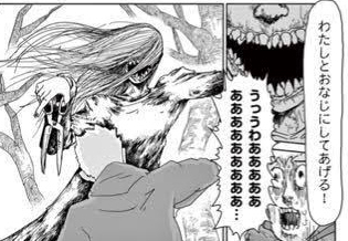 造形より伝承や生態?への混ぜ方がメインだけど、ホラー漫画なのでデザインも結構怖い