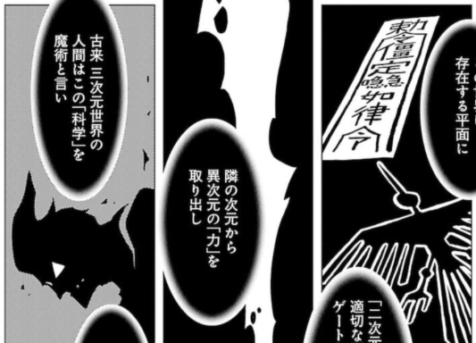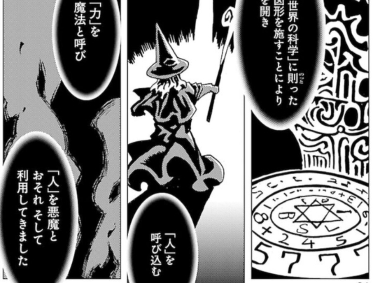 二次元世界の住人である二次元人が伝承にある悪魔の正体、魔術は線と図形を用いた二次元世界の科学技術という設定