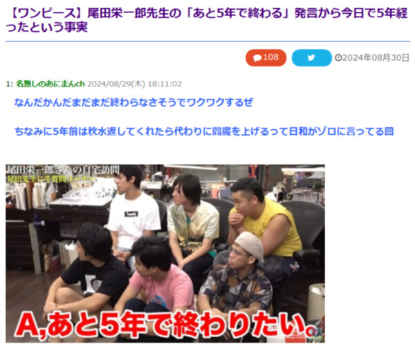 仮にそんな予定があったとしても5年完結を本気って編集すらも言ってた温度感なのにこうなった尾田っちと編集部が延期しないわけないだろ!!!